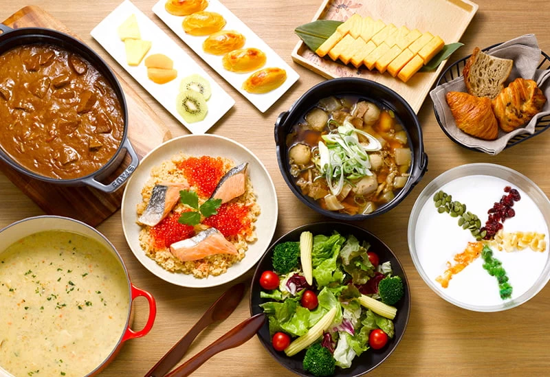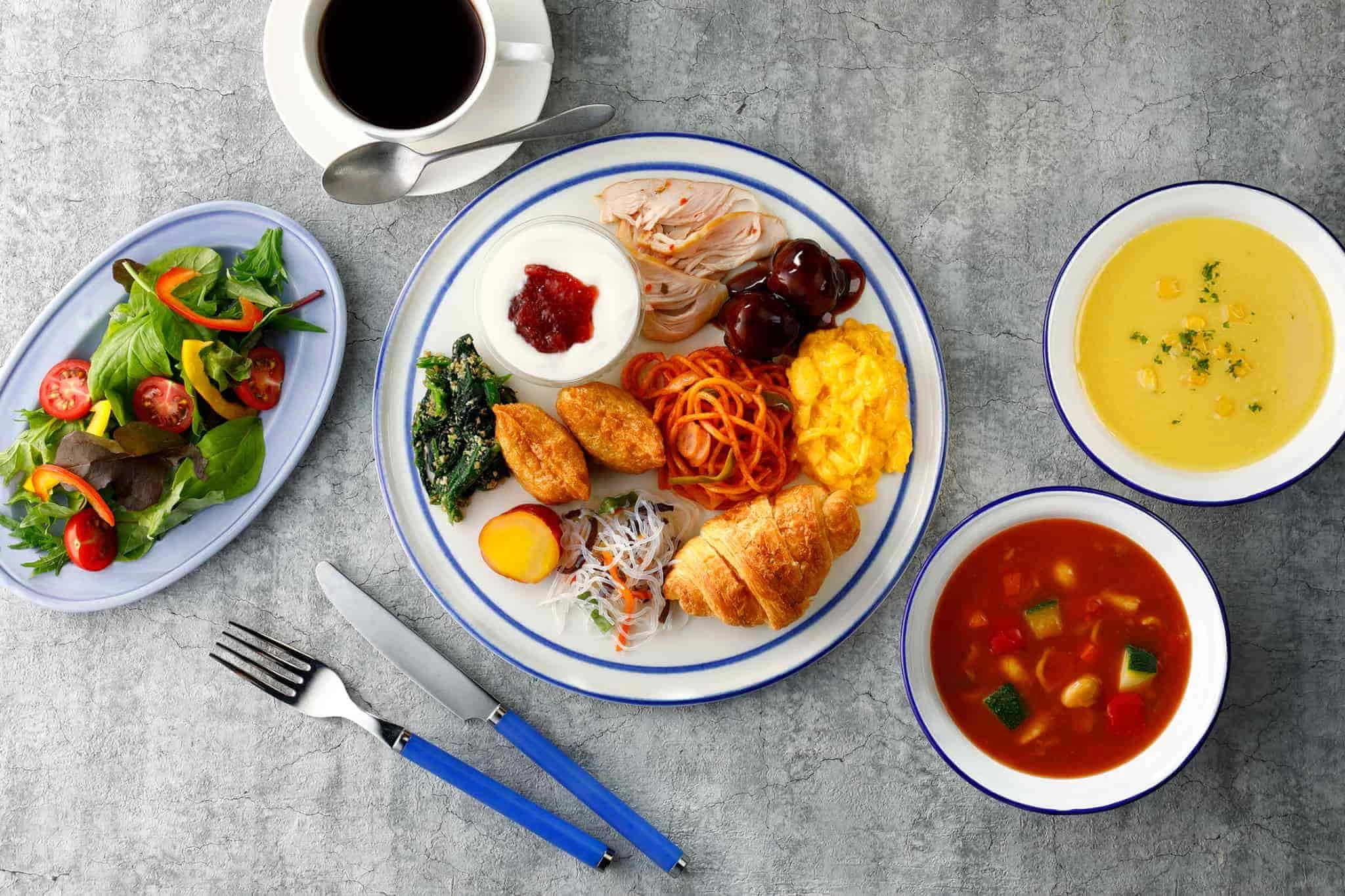 旬の食材を使ったスムージーやサラダが充実の無料朝食ビュッフェが好評