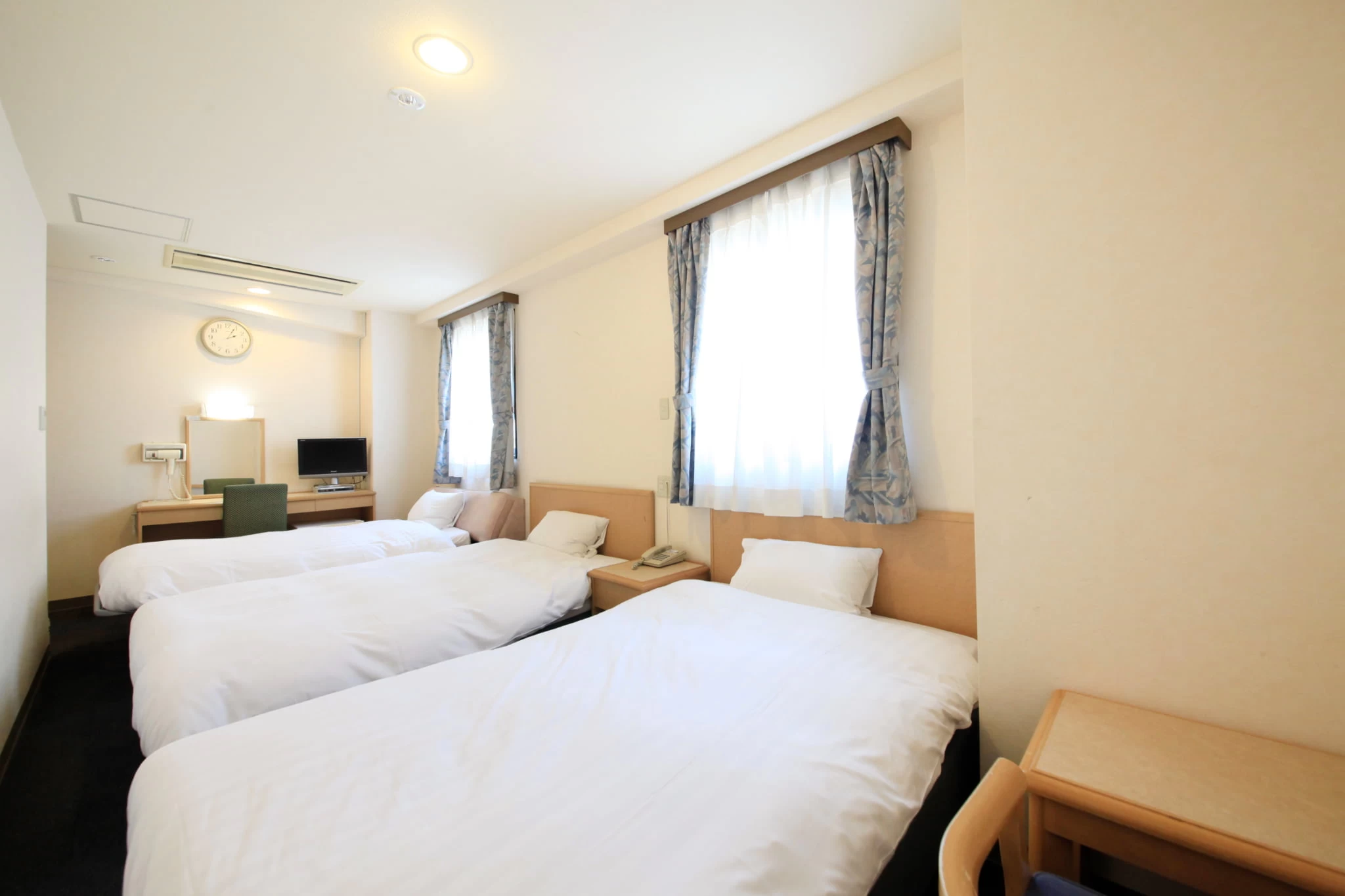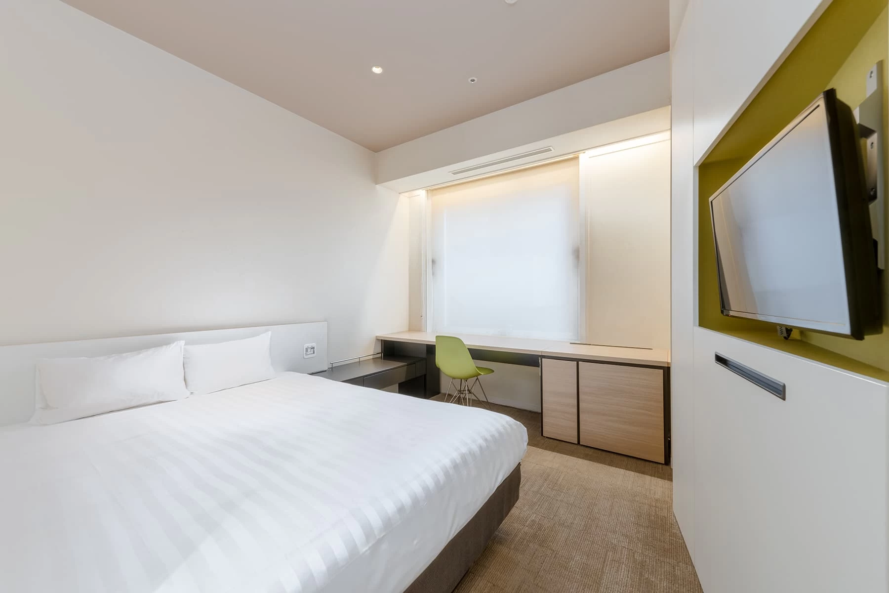 ショッピングに便利なクリスロード商店街のど真ん中に位置する「ホテルプレミアムグリーンプラス」。「シングル」「セミダブル」「ツイン」「トリプル」といった機能的でコンパクトな客室は、多目的に利用可能。落ち着いたトーンで統一されており、全客室無料Wi-Fiを完備しています。朝食付きのレギュラープランをはじめ、ビジネスに便利な「4連泊プラン」、20泊以上の長期滞在に最適な「マンスリープラン」など多彩なプランが勢揃い。
