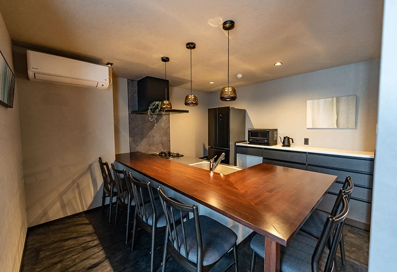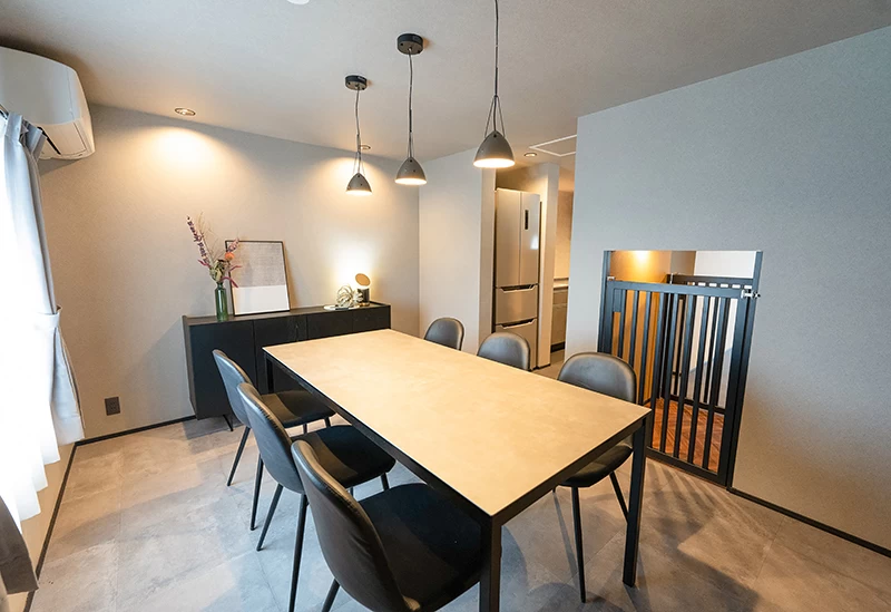 「IZUMO DOGS by HIYORISTAY」は、古民家をリノベーションした和モダンな一棟貸し宿。ナチュラルカラーで統一されたリビングは床を一段下げた設計で、愛犬とも目線を合わせて寛げます。広々としたベッドルームや充実のキッチン、バルミューダ家電など快適な設備も完備。天然精油のアロマが香る癒やしの空間で、最大6名・愛犬3頭まで宿泊可能。出雲大社へ徒歩圏内という好立地で、心地よい非日常の滞在が叶います。