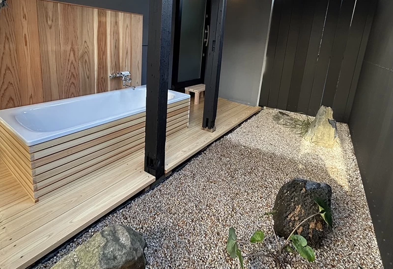 中庭を望む湯浴みと香りに癒やされる、出雲の隠れ家