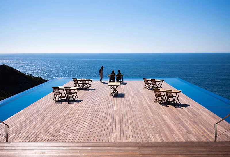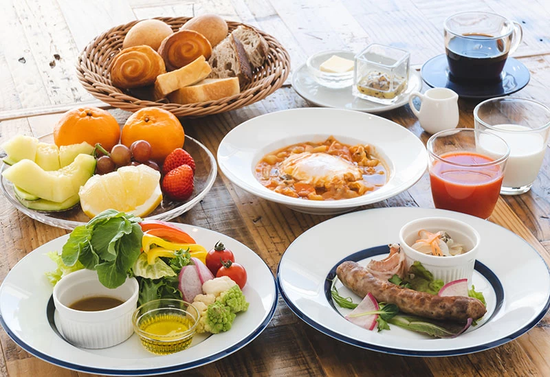 四国最南端の足摺宇和海(あしずりうわかい)国立公園内にある「TheMana Village(ザマナ ヴィレッジ)」は、全室オーシャンビューのラグジュアリーなリゾートホテル。サウナと露天風呂付きのスイートルームや、太平洋を一望できるテラスで贅沢なひとときを過ごせます。宿泊プランは、和会席料理またはイタリアンフルコースの2種類から選択可能。ライブキッチンで藁焼きする迫力の「かつおのたたき」や石窯焼きピッツァなど、地元食材を活かした料理は絶品です。朝食も和洋から選べ、地元産の新鮮な食材を堪能できます。また、Cafe&Barで味わえる高知の食材を使った本格ジェラートや地元柑橘を使ったドリンクもおすすめ。至福のリゾートステイを満喫できます。