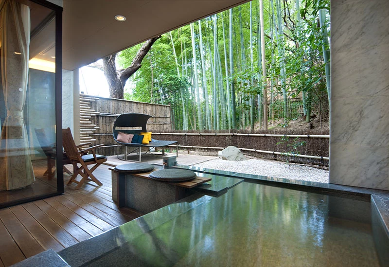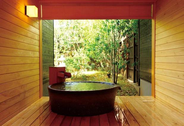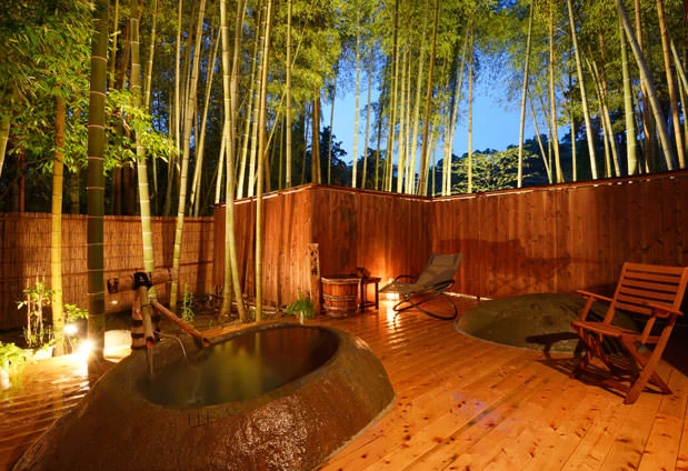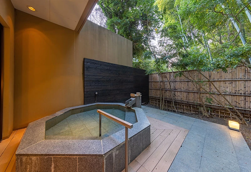 川沿いに佇む、モダンな雰囲気が魅力的なホテルです。16室の客室はすべてスイート仕様で、源泉掛け流しの専用露天風呂付き。自然の中で非日常を感じるのに最適な場所です。相模湾と駿河湾、両方を有する土地ならではの新鮮な魚介や山の幸など、伊豆の旬の食材を活かした料理の数々は、まさにご褒美にふさわしい逸品です。スパやマッサージメニューも充実しており、大人の贅沢なひと時が味わえるでしょう。