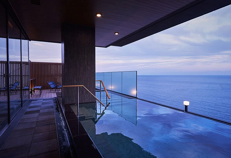 全客室に露天風呂が付いたラグジュアリーなホテル。大浴場にはインフィニティ露天風呂があり、雄大で美しい相模湾を一望しながら温泉を堪能することができます。食事は和食を会席スタイルでいただくダイニングや、相模湾の恵みを味わえる鮨を楽しめます。スパメニューも用意されており、ゆっくりと体を労わりたいときのひとり旅におすすめです。