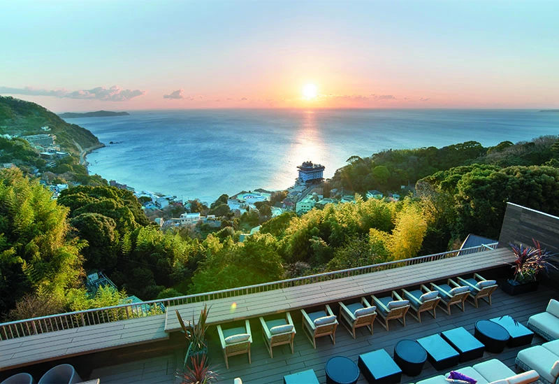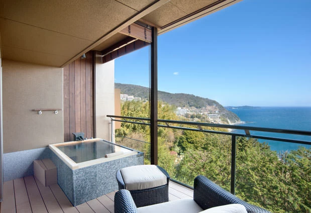 全室オーシャンビューの温泉露天風呂を備えたホテルです。露天風呂からは相模湾を望むことができ、時間を忘れて景色を眺めることができるでしょう。ベッドは「寝るを愉しむ」をコンセプトにシモンズ社の特注品を備え、非日常を演出しています。地元の素材を活かした和食ダイニングでの食事は、ベジタリアンや糖質制限に特化したメニューも。心のこもったおもてなしで心も体も満たされること間違いなしです。