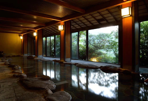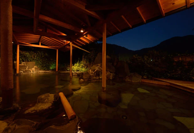 伊豆半島のほぼ中央に位置する閑静な温泉旅館です。敷地内から湧く自家源泉を有し、趣の異なる個性的な温泉を堪能できます。露天風呂や内湯、岩盤浴などでゆっくりと体を労われば、最高のご褒美となるでしょう。自然に囲まれた静寂な空間が、日頃の喧騒を忘れさせてくれるはずです。近海で獲れた新鮮な魚介類や、本わさびなどの名産品を使用した食事と極上の温泉で、心からの寛ぎを楽しんでみては。