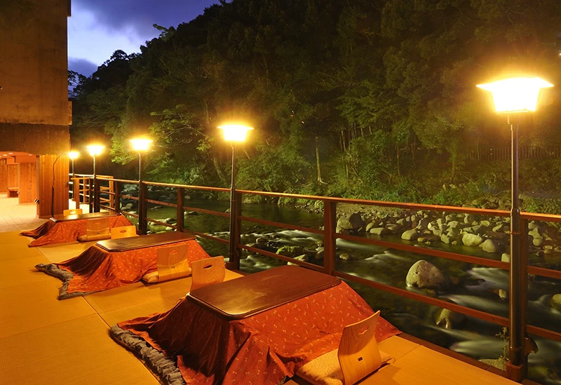 文豪、川端康成の代表作「伊豆の踊子」の舞台になった湯ヶ島温泉に位置する、風情ある旅館です。客室からは清流のせせらぎを感じることができ、四季折々の美しい景色を楽しめます。無料の貸切風呂も完備しており、ひとりでゆっくりと入浴することが可能です。冬でもこたつとちゃんちゃんこを羽織って川床が楽しめるなど、都会の幻想を忘れてリラックスするのにぴったりな宿です。