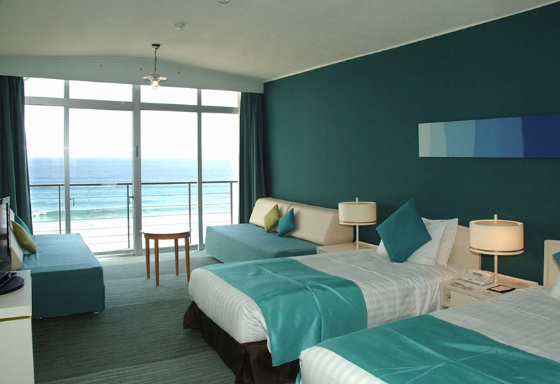 白浜中央海水浴場の美しい海を一望する下田プリンスホテルは、自分を労わるご褒美旅にふさわしい絶景の宿です。最上階には、豪華客船を思わせる「ツインルームA」など、日常を忘れさせてくれる上質な客室が揃います。海と繋がるような開放感に包まれる展望温泉浴場では、波の音を聞きながら心ゆくまで癒やされましょう。夜には海面に月光が輝くムーンロード、朝には水平線から昇る朝日を独り占めする、大人だけに許された贅沢な時間をお過ごしいただけます。