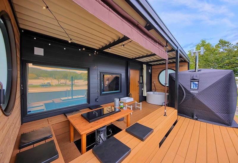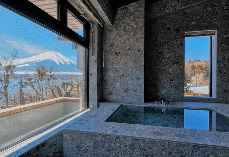 すべてのバルコニーから富士山が見えるのが特徴の宿です。サウナで行われる宿主の熱波サービスはサウナーが集うほど有名で、サウナ上級者からも好評です。また、オリジナルのロウリュウは、ほうじ茶がブレンドされたアロマ水が用意されており、いつものサウナとはひと味違った「ととのう」を体験できます。外気浴が楽しめるようにインフィニティチェアが完備されているのもポイントです。