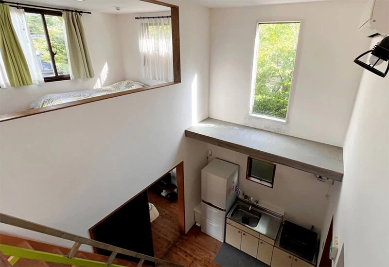 スタイリッシュな外観と北欧風のかわいらしい室内のギャップが魅力的なコテージです。コテージには、サウナやキッチン、テラスにはバーベキュースペースも完備。アウトドア初心者でも快適に過ごせるように工夫されています。また、手ぶらでも楽しめるようにドライヤーや作務衣(さむえ)などの備品やアメニティが充実しており、女性グループやカップルにもおすすめです。