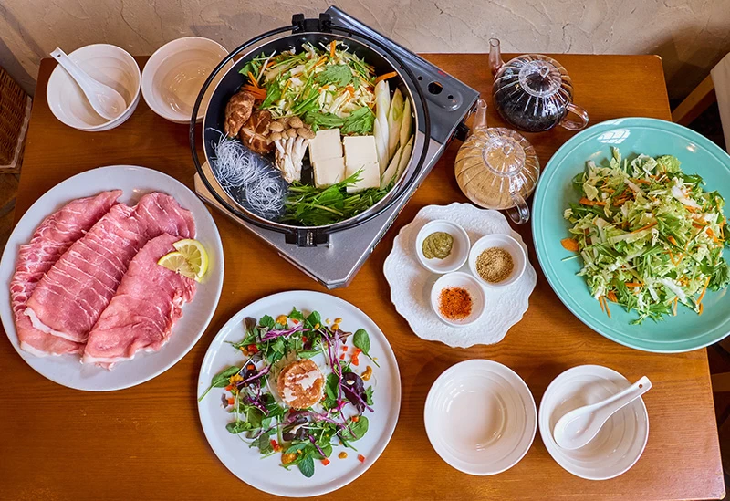 Casa Allegraは、東富士五湖道路山中湖ICから車で約15分。天然酵母ピザと自家製タルトが評判のカフェに隣接する、一日1組限定の一棟貸し別荘です。とろけるチーズのピザはワインと好相性。甲州富士桜ポークのしゃぶしゃぶを吉田のうどんや地元野菜とともに味わうコースも人気です。また、愛犬同伴可能なカフェの料理は別荘にケータリングもできます。プランは、朝夕食付きや素泊まり、断食・デトックス、バーベキューまでバリエーション豊富に揃っています。富士の息吹と陽光の中で深呼吸したくなる、そんな自然を存分に感じられる滞在が可能です。