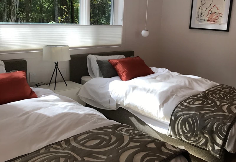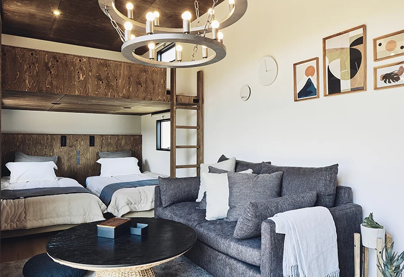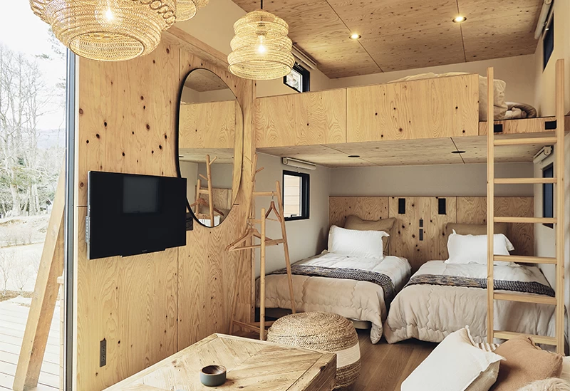 北欧風でかわいらしいキャビンはグループ旅行に最適