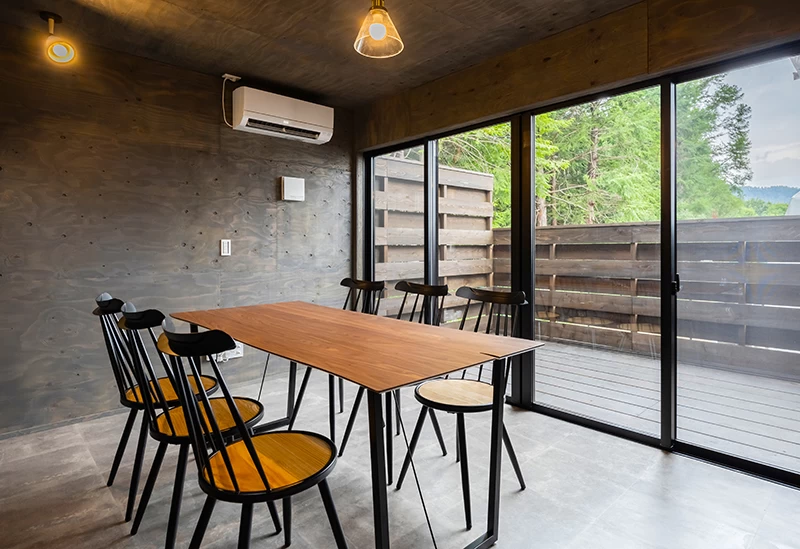 富士山を望む山中湖エリアに佇む、一日一組限定の一棟貸し別荘。吹き抜けの開放的な設計や大きな窓から差し込む光が心地よく、女子旅やグループ旅行に最適です。ここでは小型犬から大型犬まで同伴可能で、専用ドッグランも完備。隣接するカフェでは、天然酵母ピザや自家製タルトが人気で、地元食材を活かした料理やケータリングも楽しめます。愛犬とともに贅沢な時間を過ごせる、自然に囲まれた癒やしの空間です。