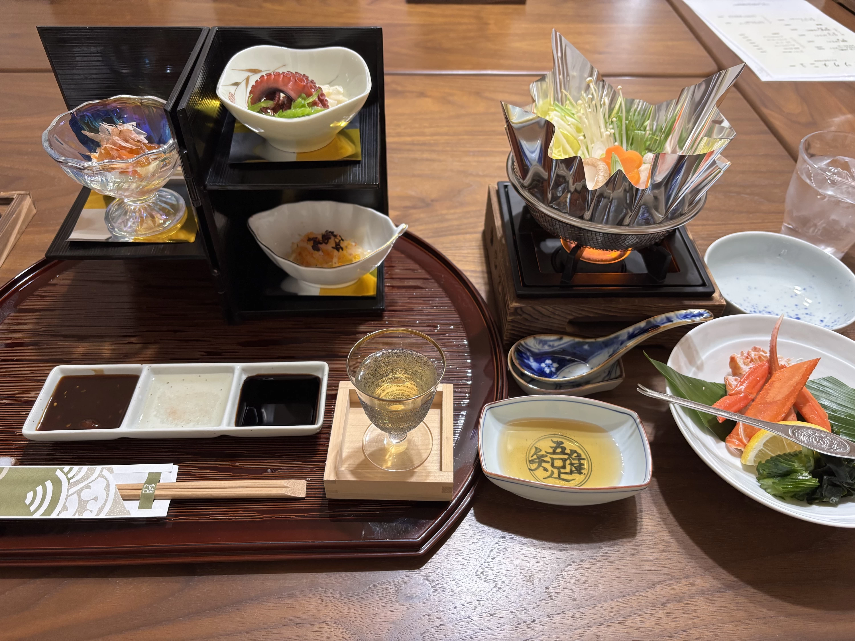 今回の宿泊で特に感動したのが、島の味覚が詰まった夕食! 食前酒から始まり煮物、鍋、肉料理、魚料理、天ぷら、お吸い物、釜めし、デザートとボリュームがたっぷり。小豆島の幸をふんだんに使用した豪華な内容に驚きました。