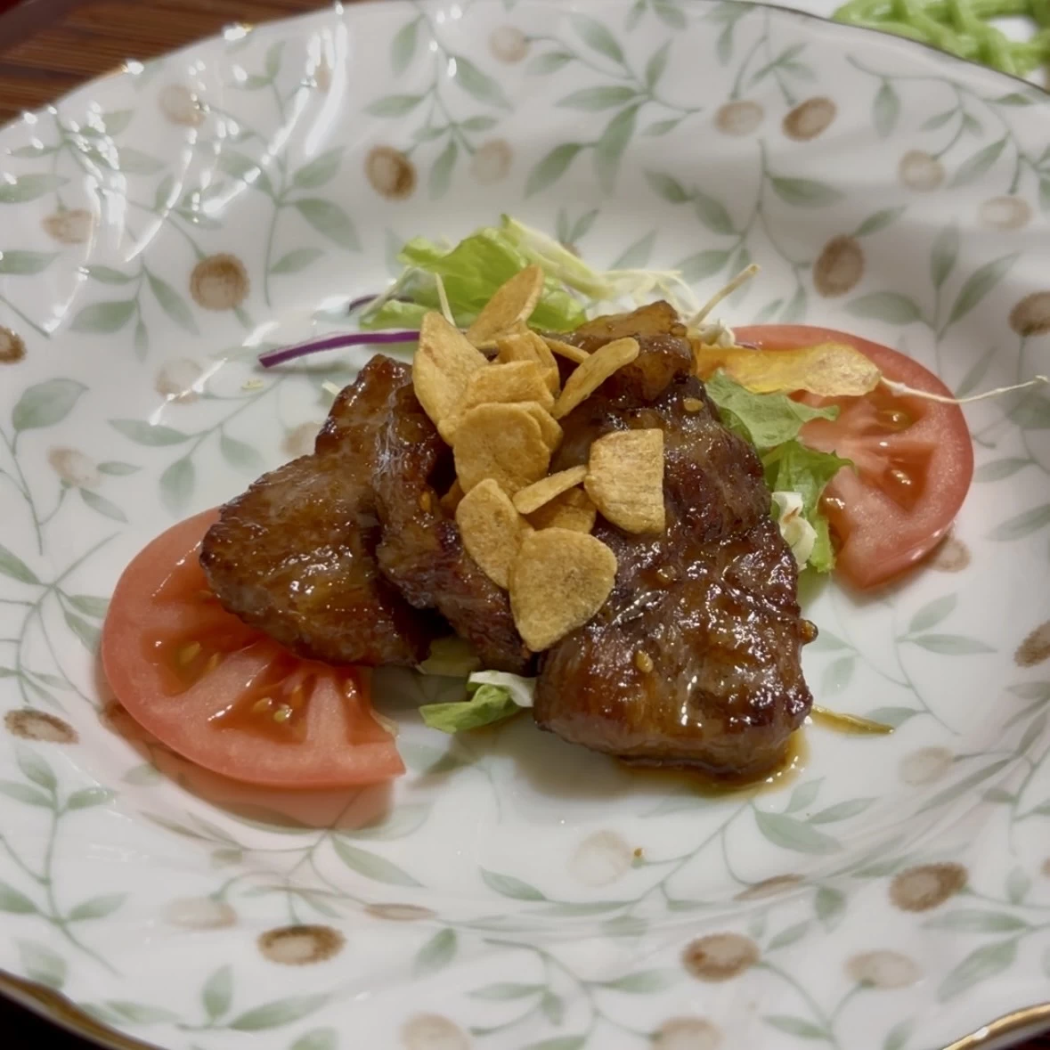 小豆島産のオリーブ牛のまろやかなコクと醤(ひしお)で焼くことで旨味が引き立った「醤焼き」。肉の旨味とタレが絶妙にマッチしています。