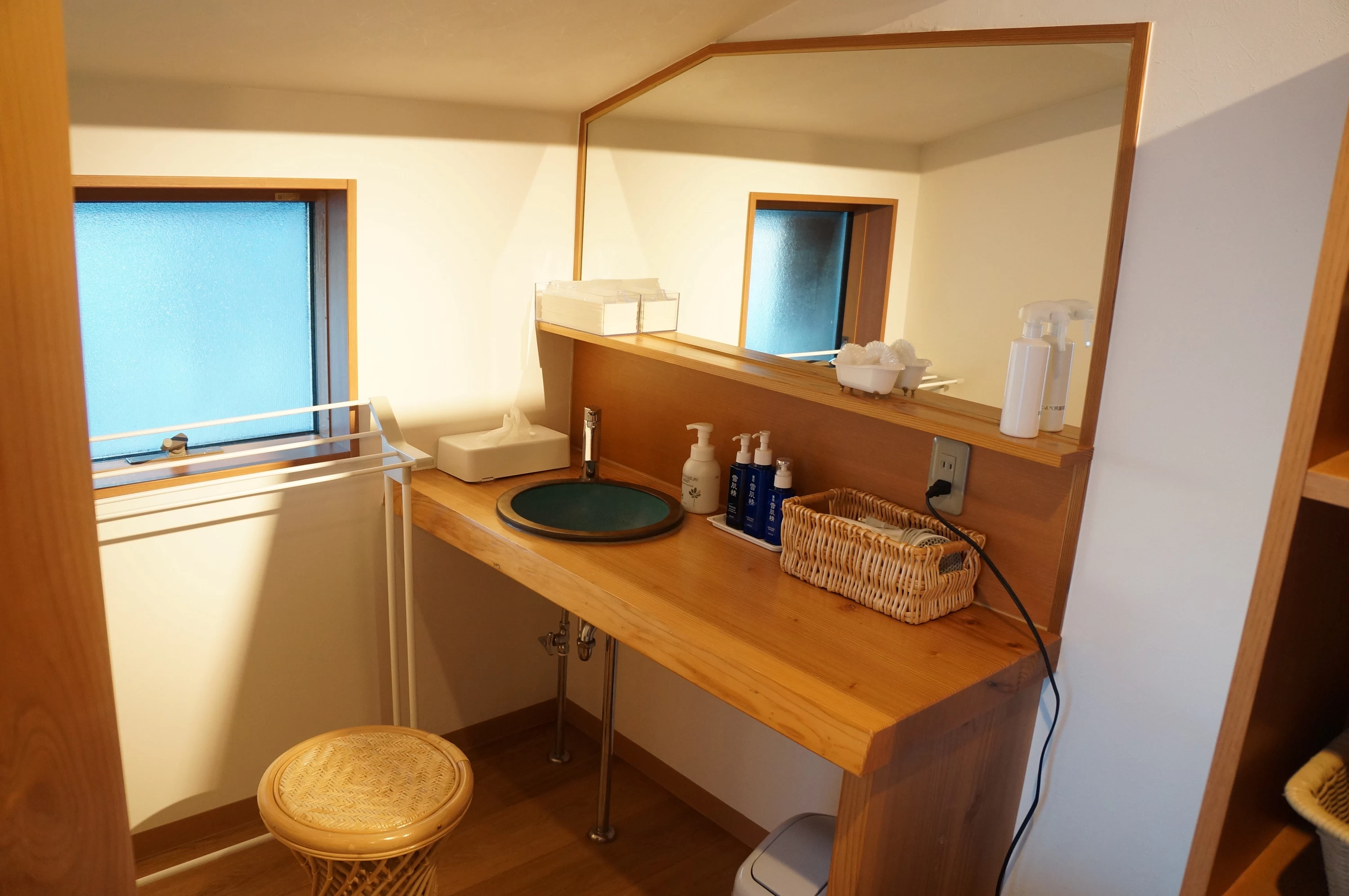 内風呂と露天風呂があり、シャワーは2つ。2人で入っても十分な広さがあります。近くに海があるので、波音を聞きながら小豆島の澄んだ夜空を見ながらの贅沢な時間。朝風呂は、一面の青空を眺められて、爽やかな1日の始まりを迎えることができました。女性に嬉しいアメニティも揃っていて、うっかり忘れてしまった時も安心。