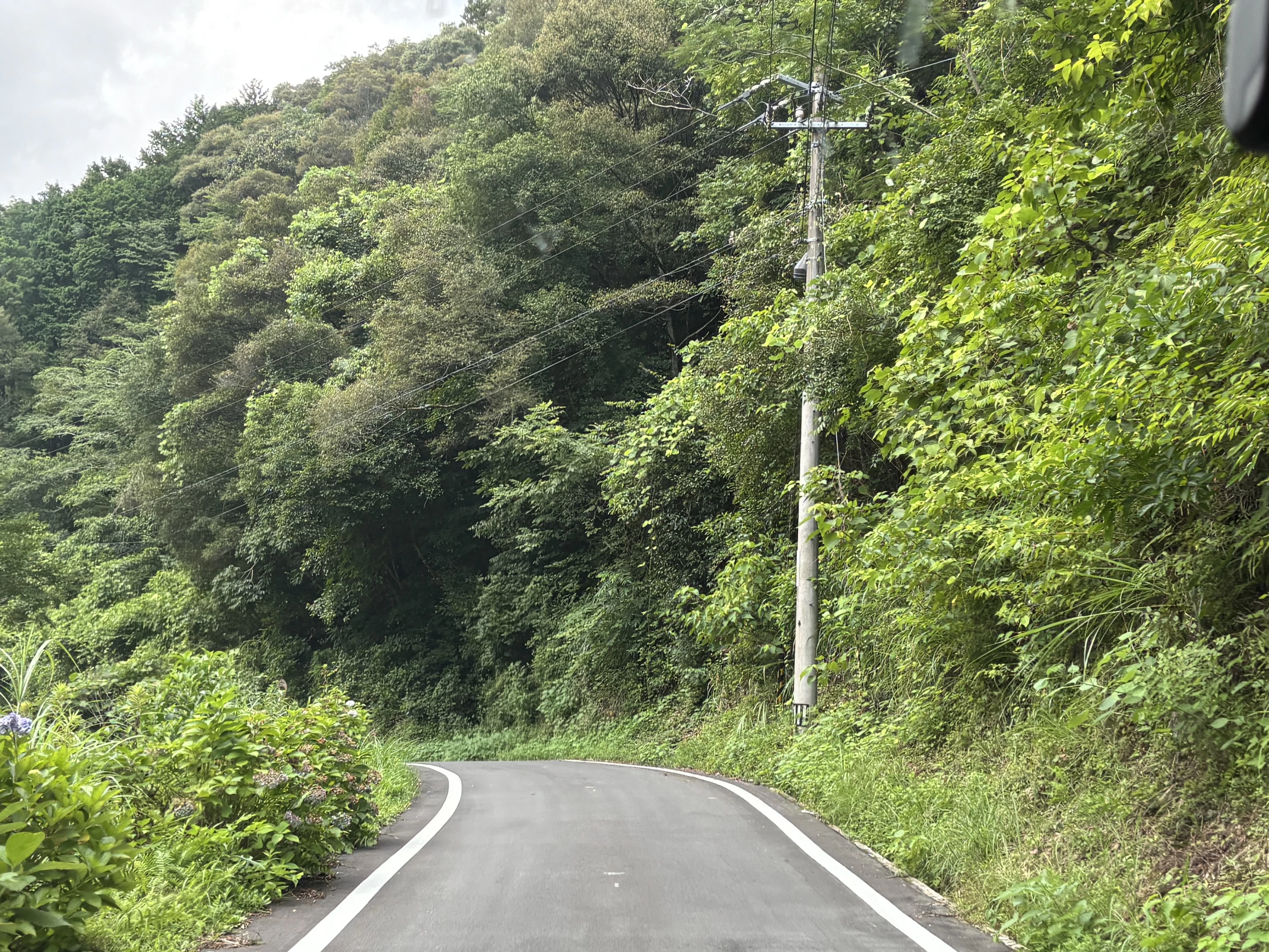 一本道の脇にはアジサイが咲いていて、旅の道中に彩りを添えていました。