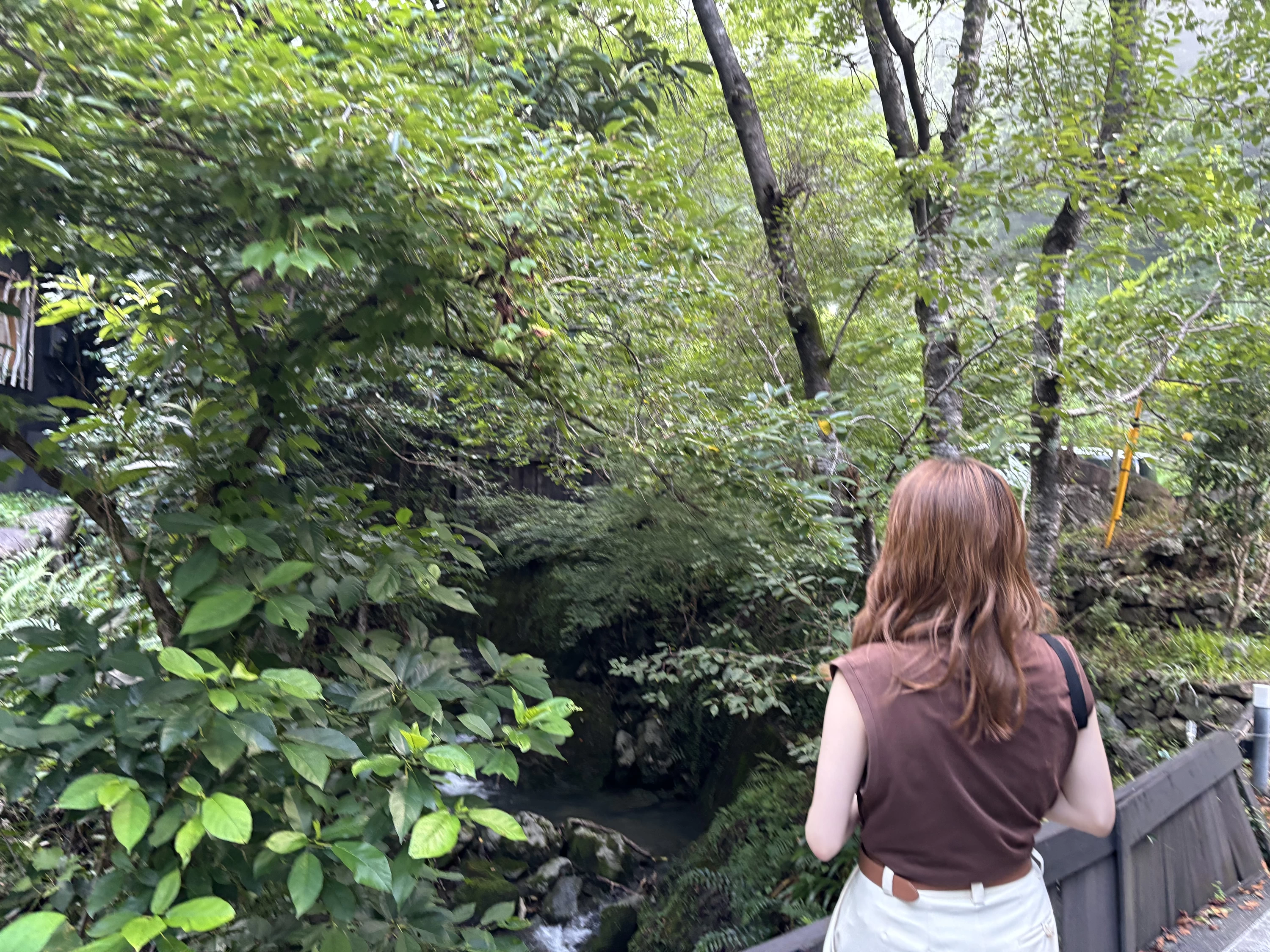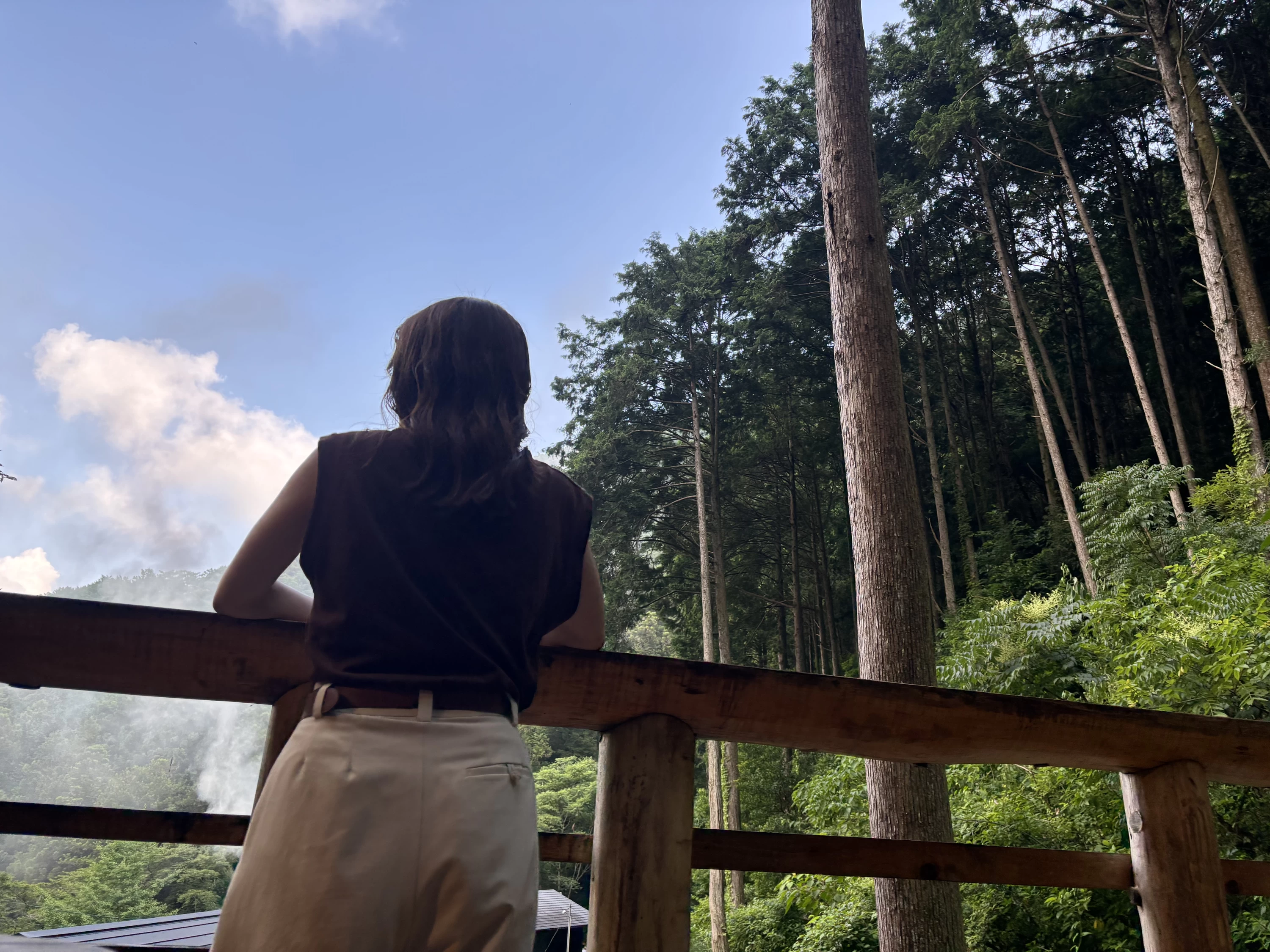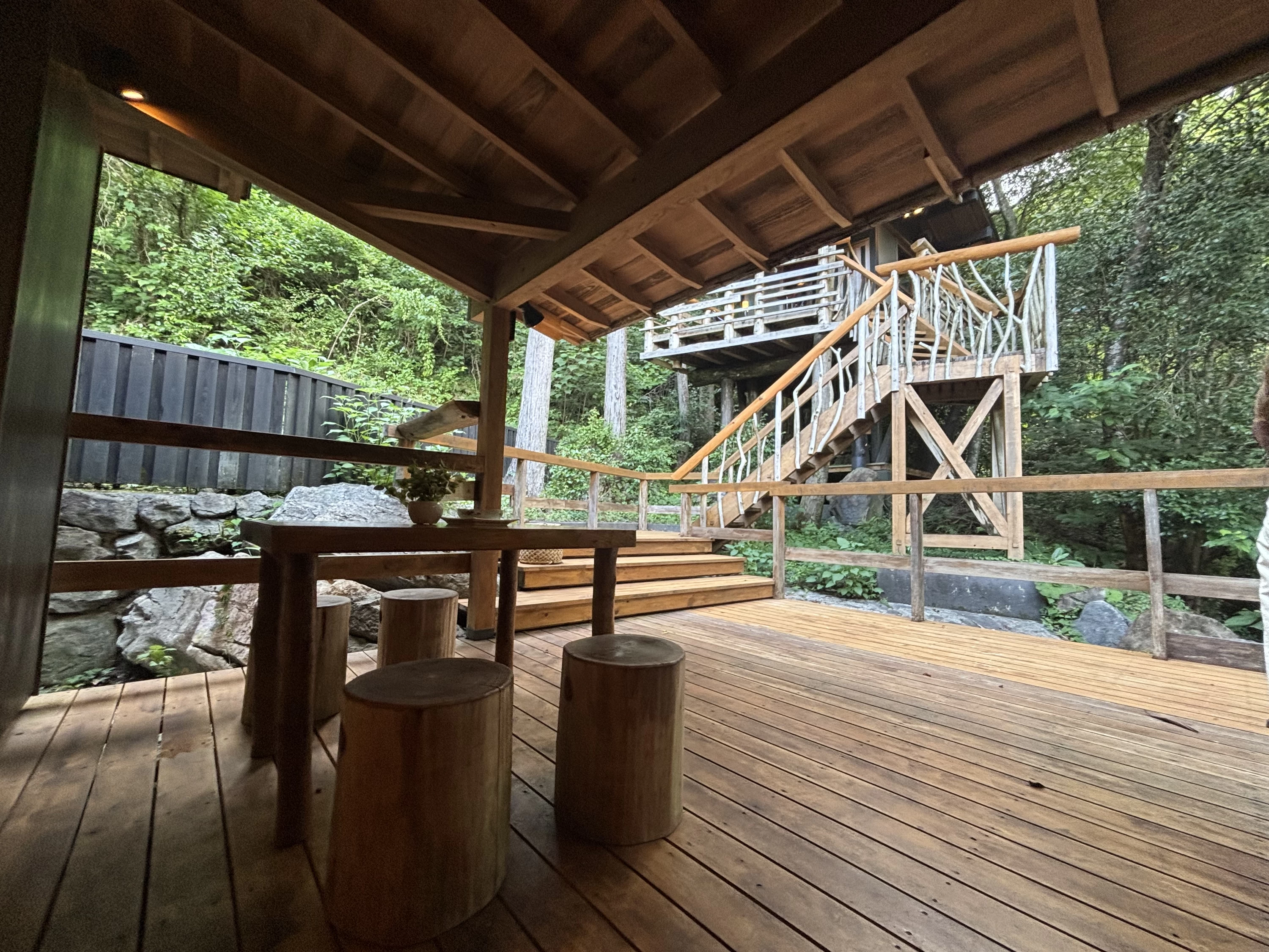頂上からは、木々や小川、宿の景色が一望でき、深呼吸をすると新鮮な空気が胸いっぱいに広がります。