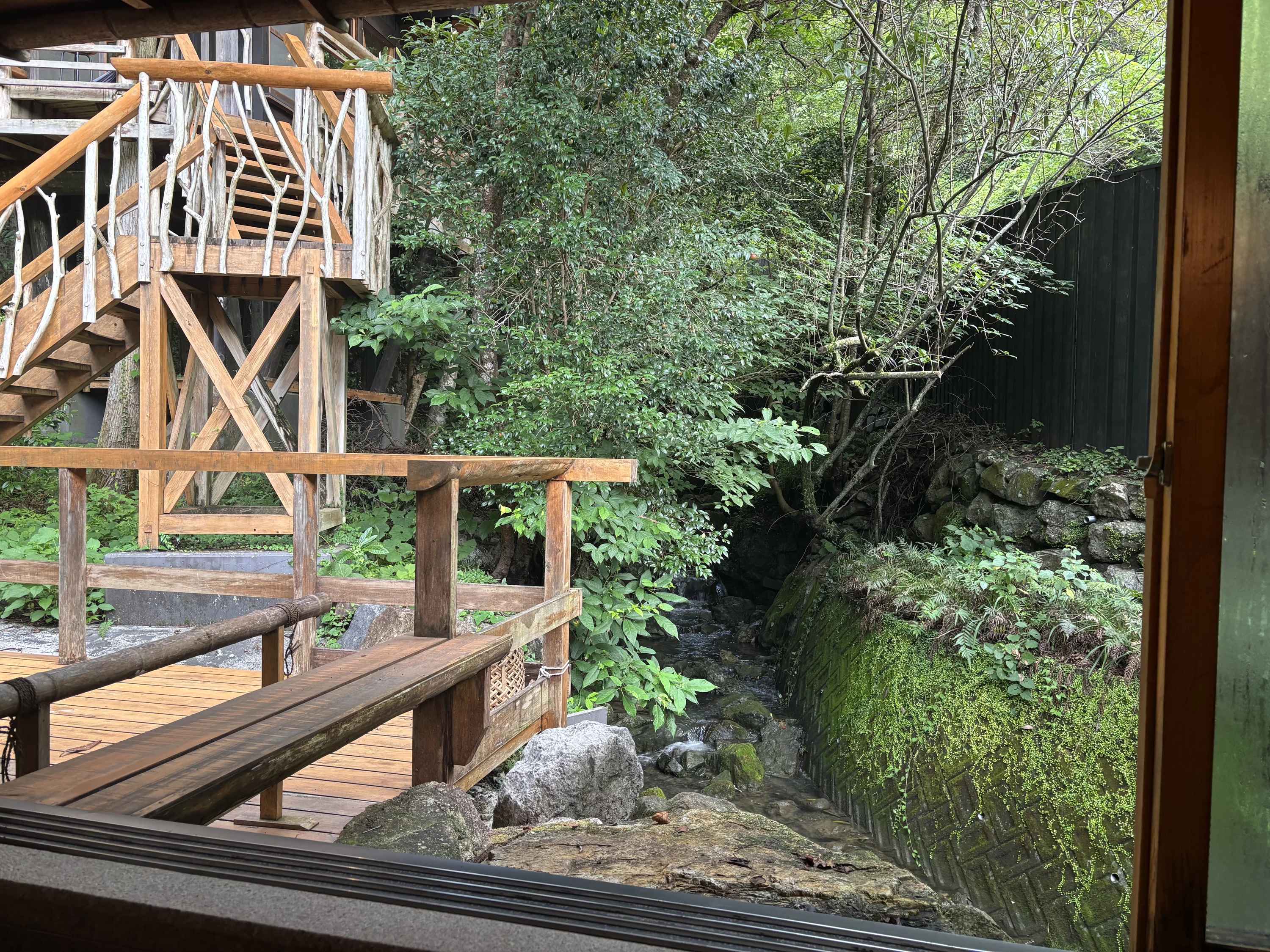 浴室のすぐ横を小川が流れ、窓はすべて開けられるため、露天風呂のような開放感も味わえました。