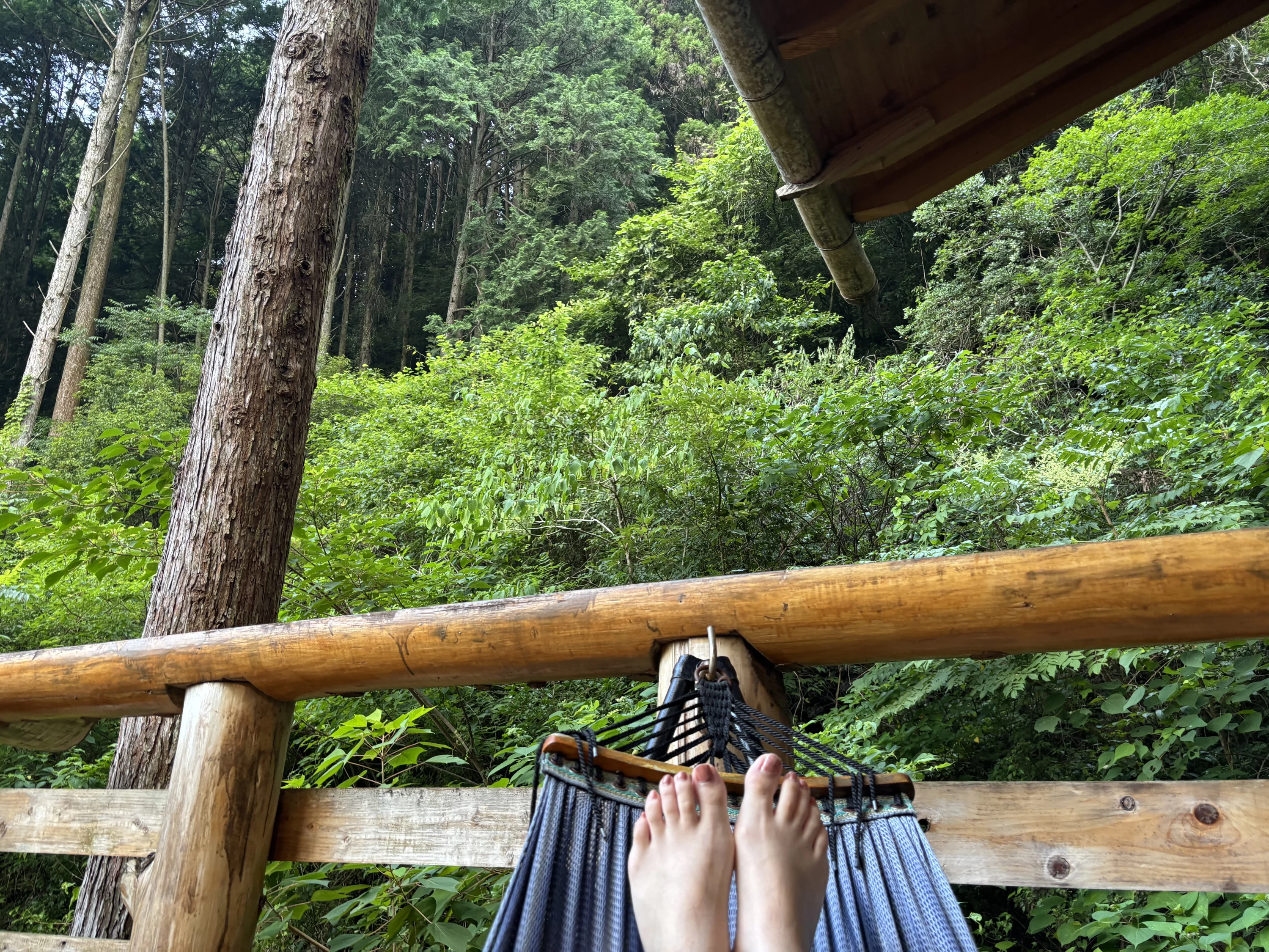 ハンモックにゆったりと寝転びながら、揺れに身を任せて空や木々を眺めていると、時間がゆっくりと流れていくのを感じられました。