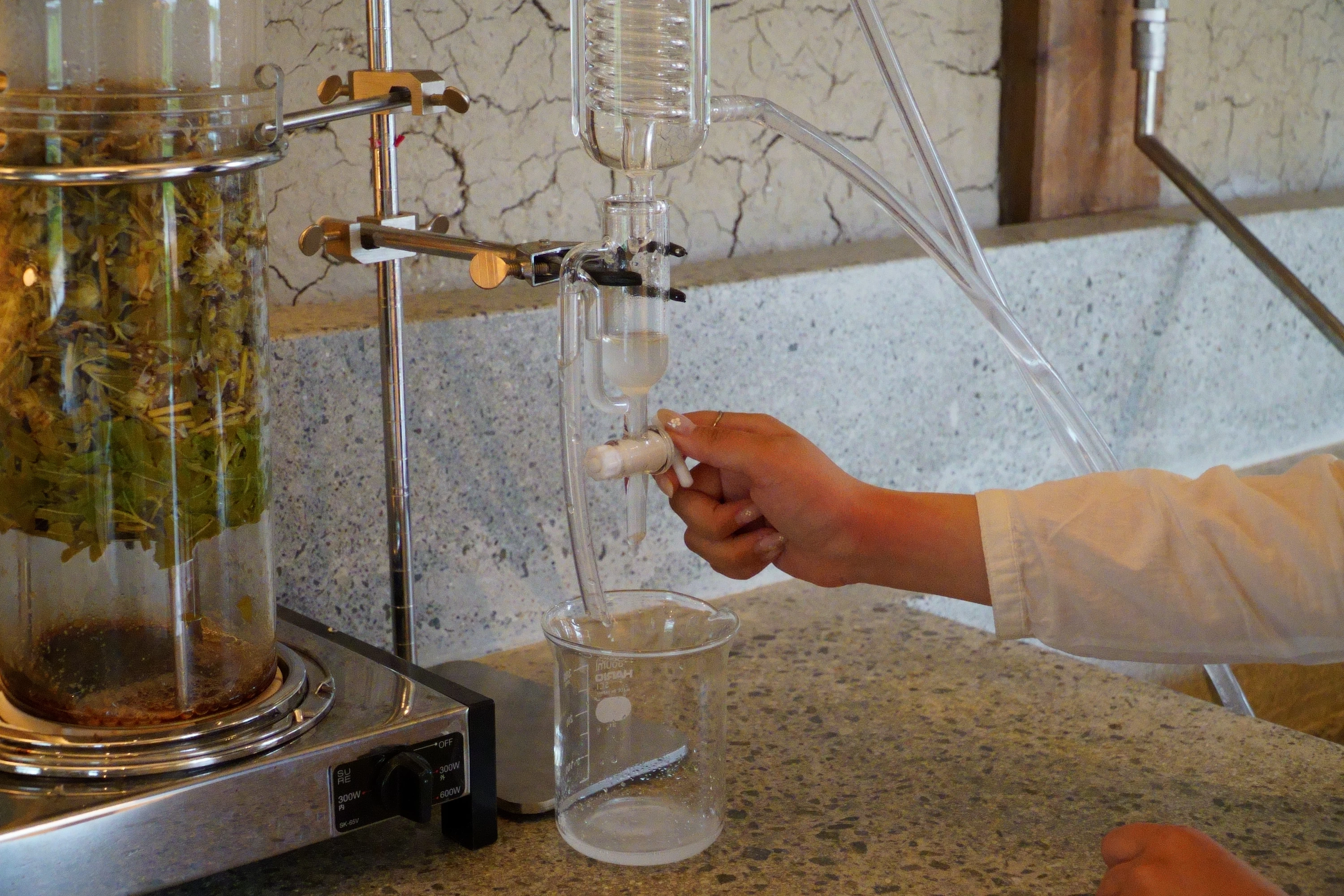 そんな体験の醍醐味(だいごみ)を感じながら、ハーブウォーターと精油が完成。