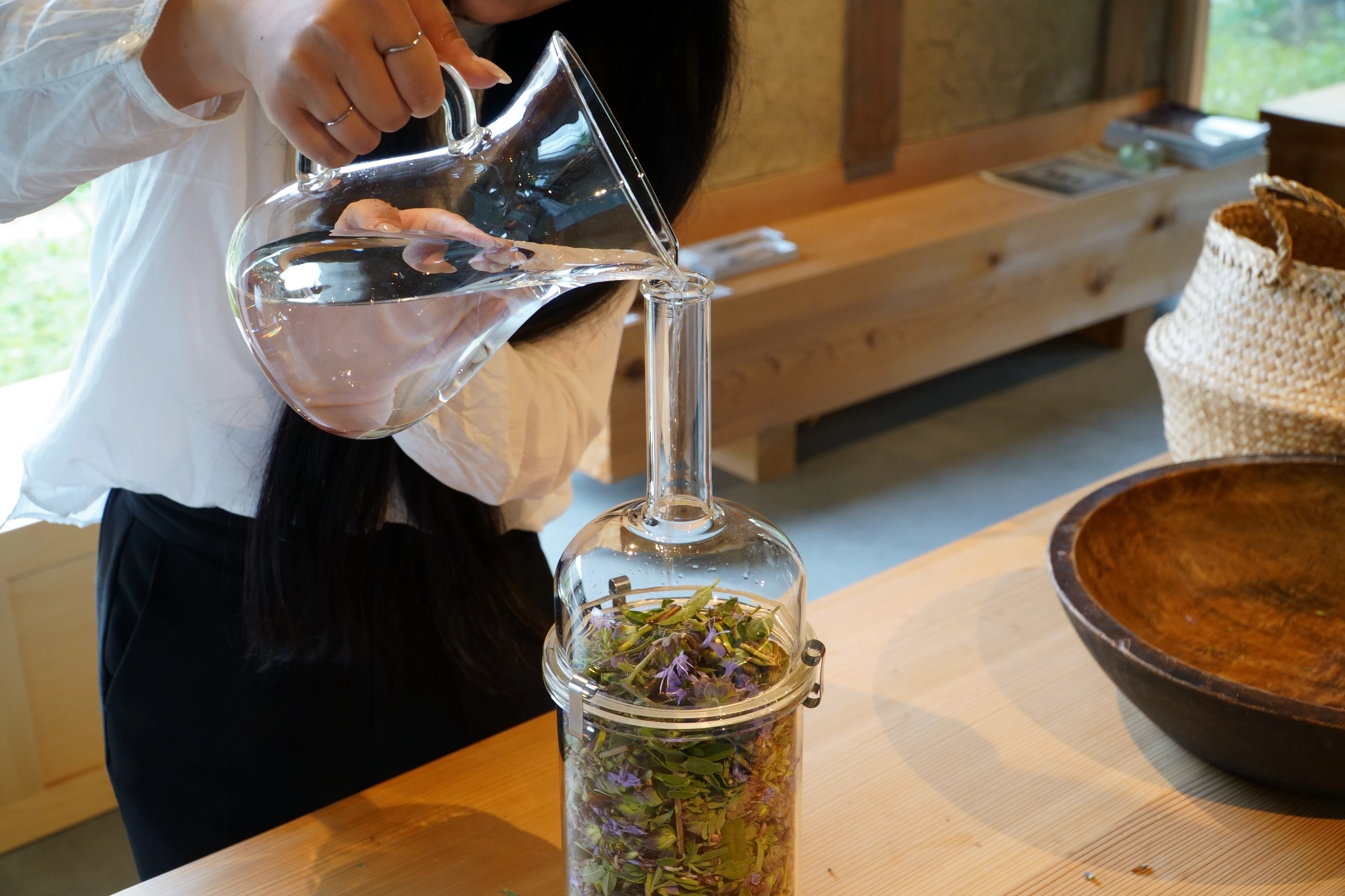 そんな魅力あふれる「KURA」を満喫したあとは、この旅の楽しみの一つ「ハーブエッセンシャルオイル作り(蒸留)体験」へ。
