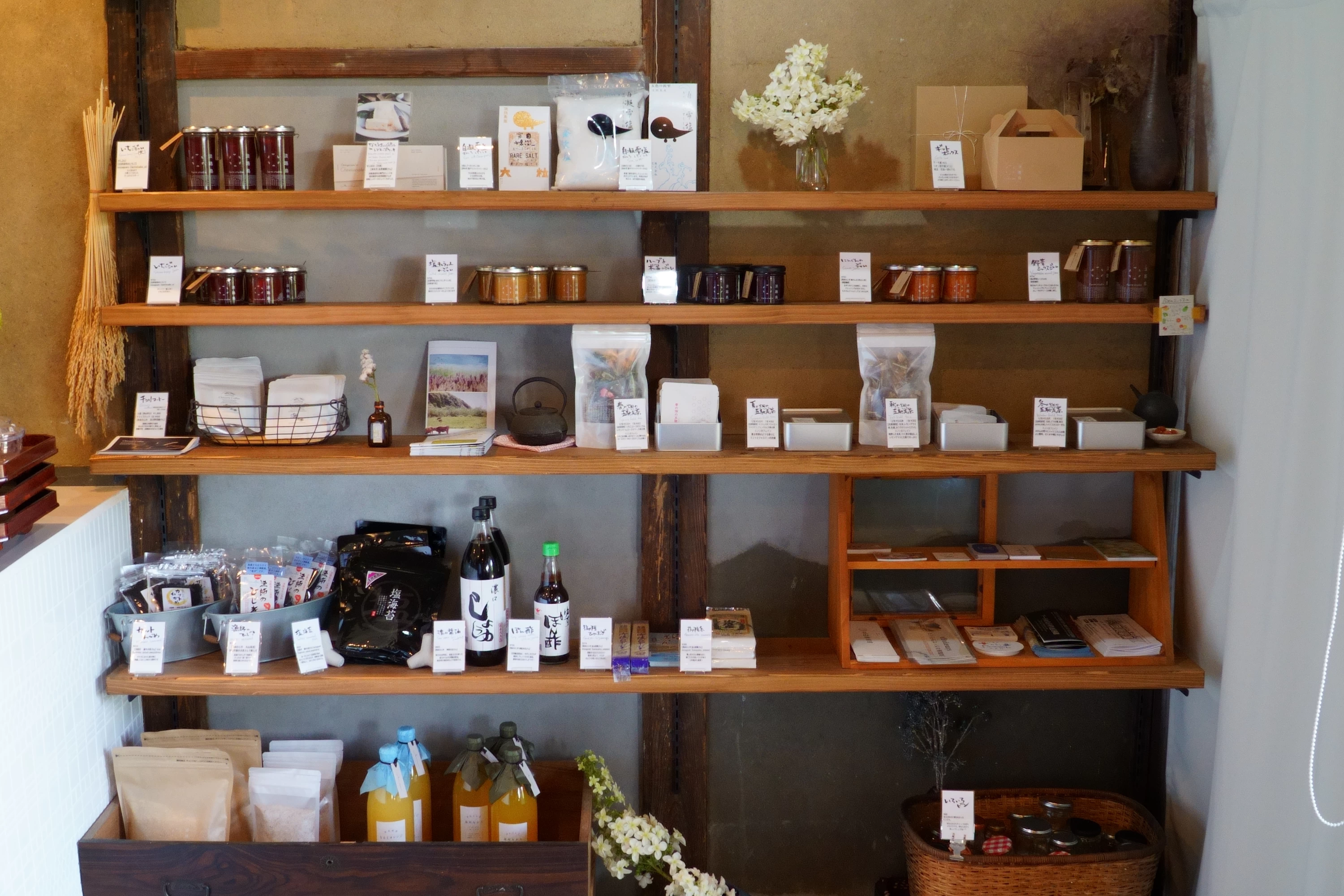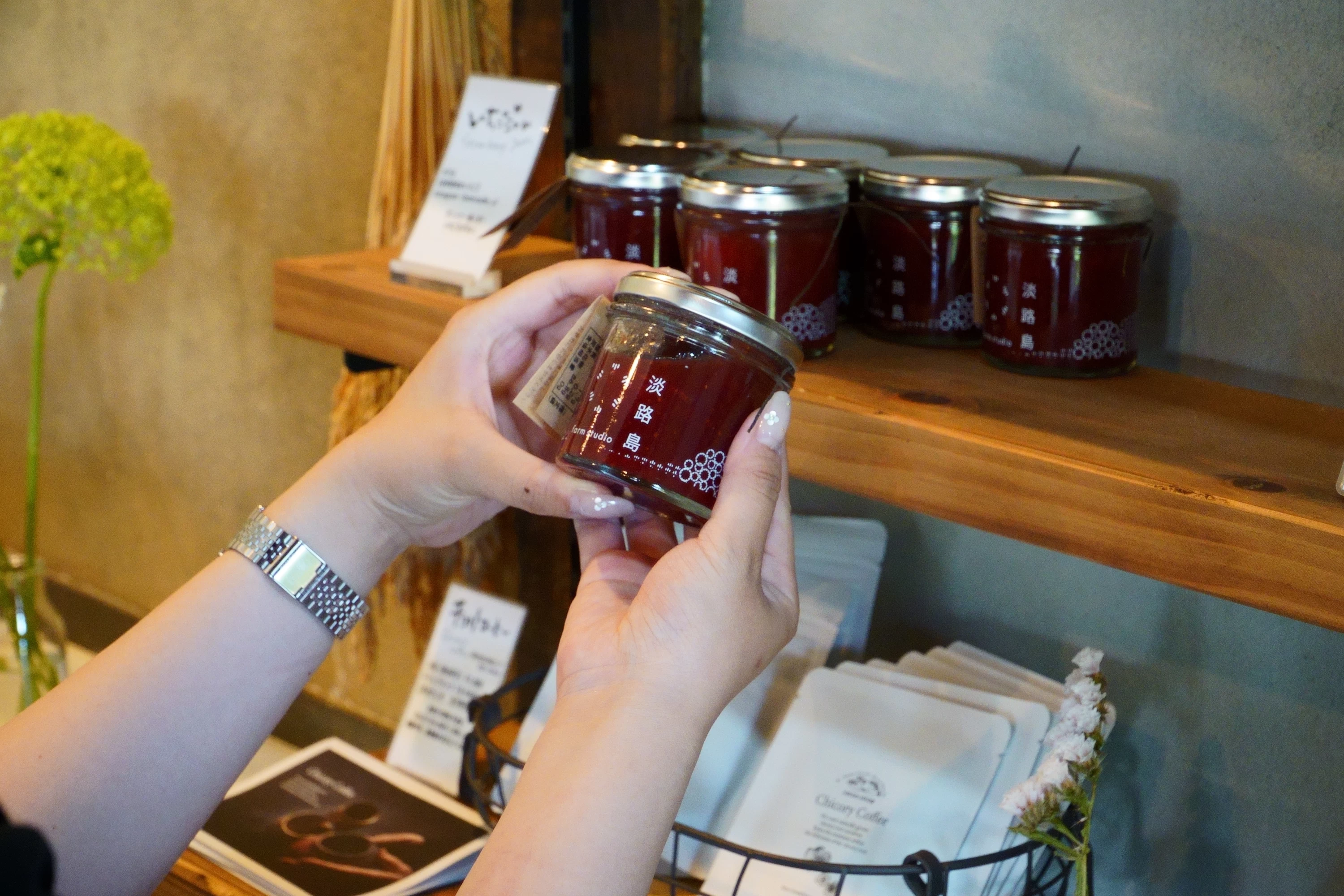 淡路島産の食材を使ったジャムや調味料を扱う直売所で、どこか懐かしさを感じる古民家と、海を望むロケーションが魅力です。