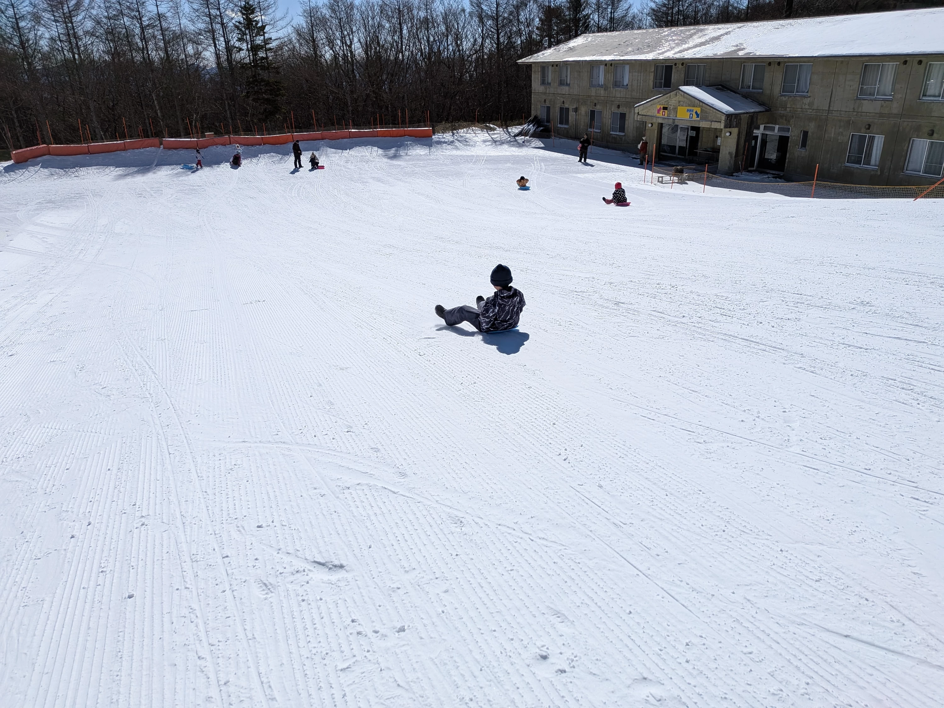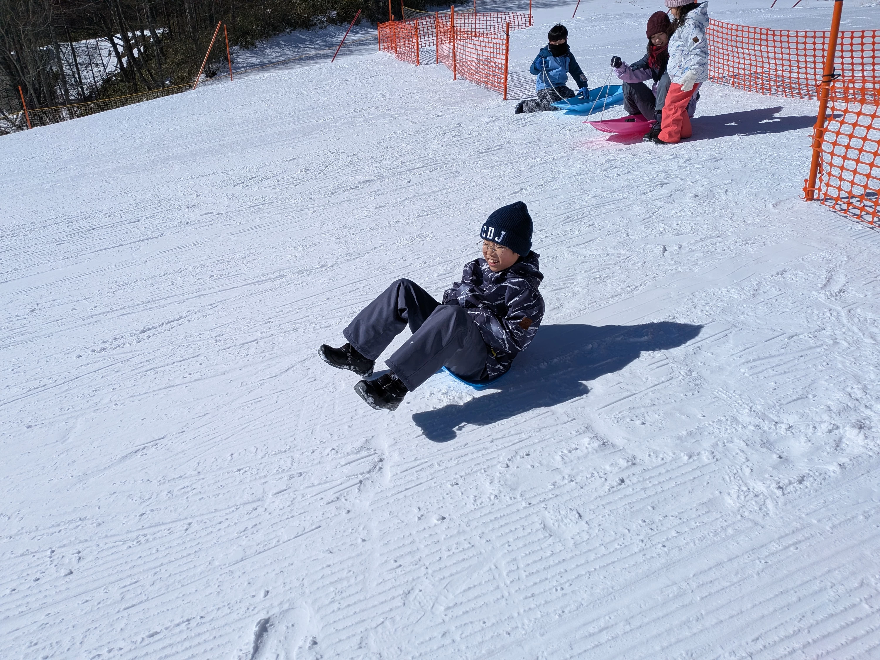 子どもたちは今回が人生初の本格的な雪山。まだスキーはハードルが高いかな……という親の心配をよそに、彼らを虜にしたのが「スノーランド」でした。