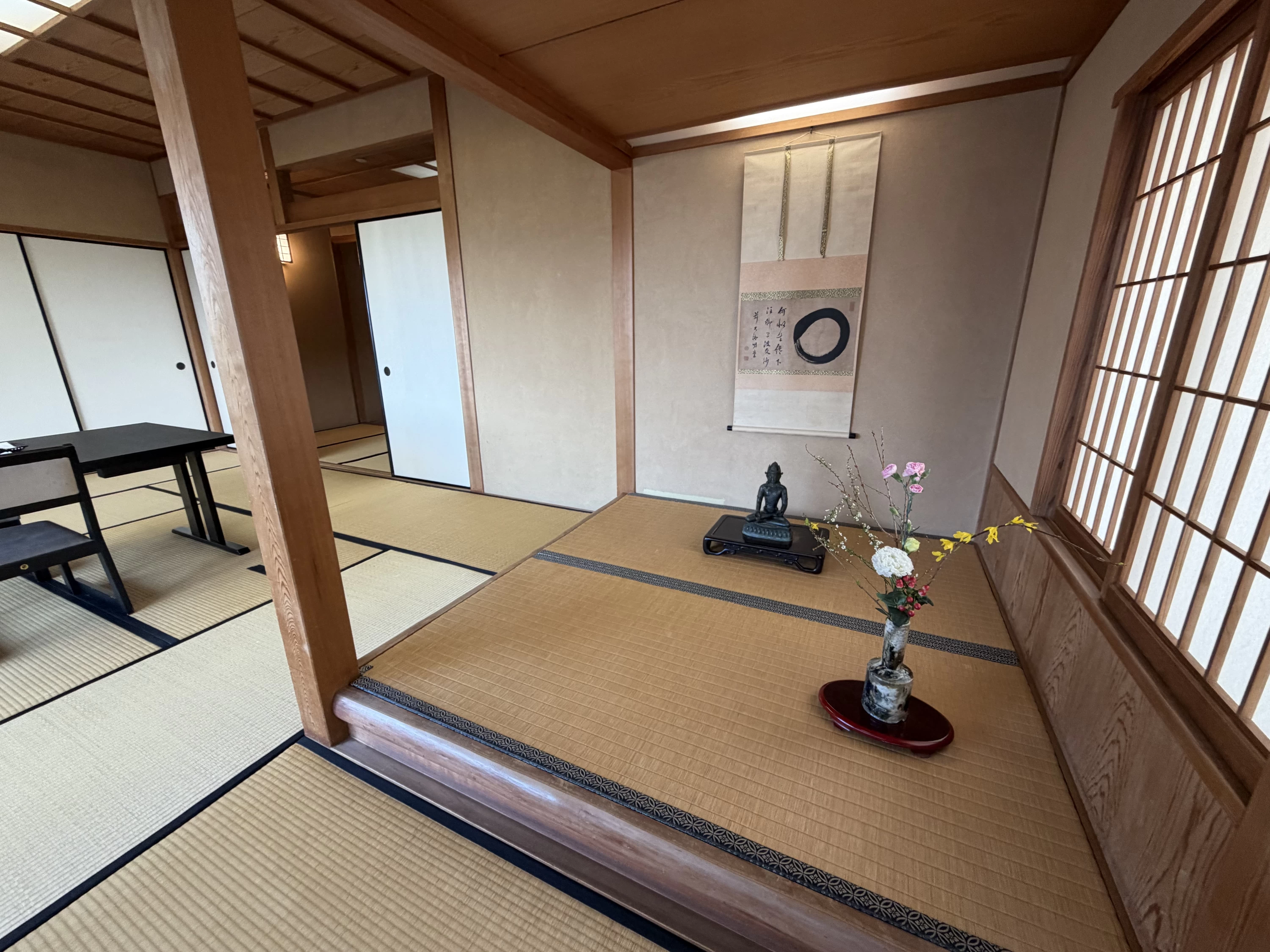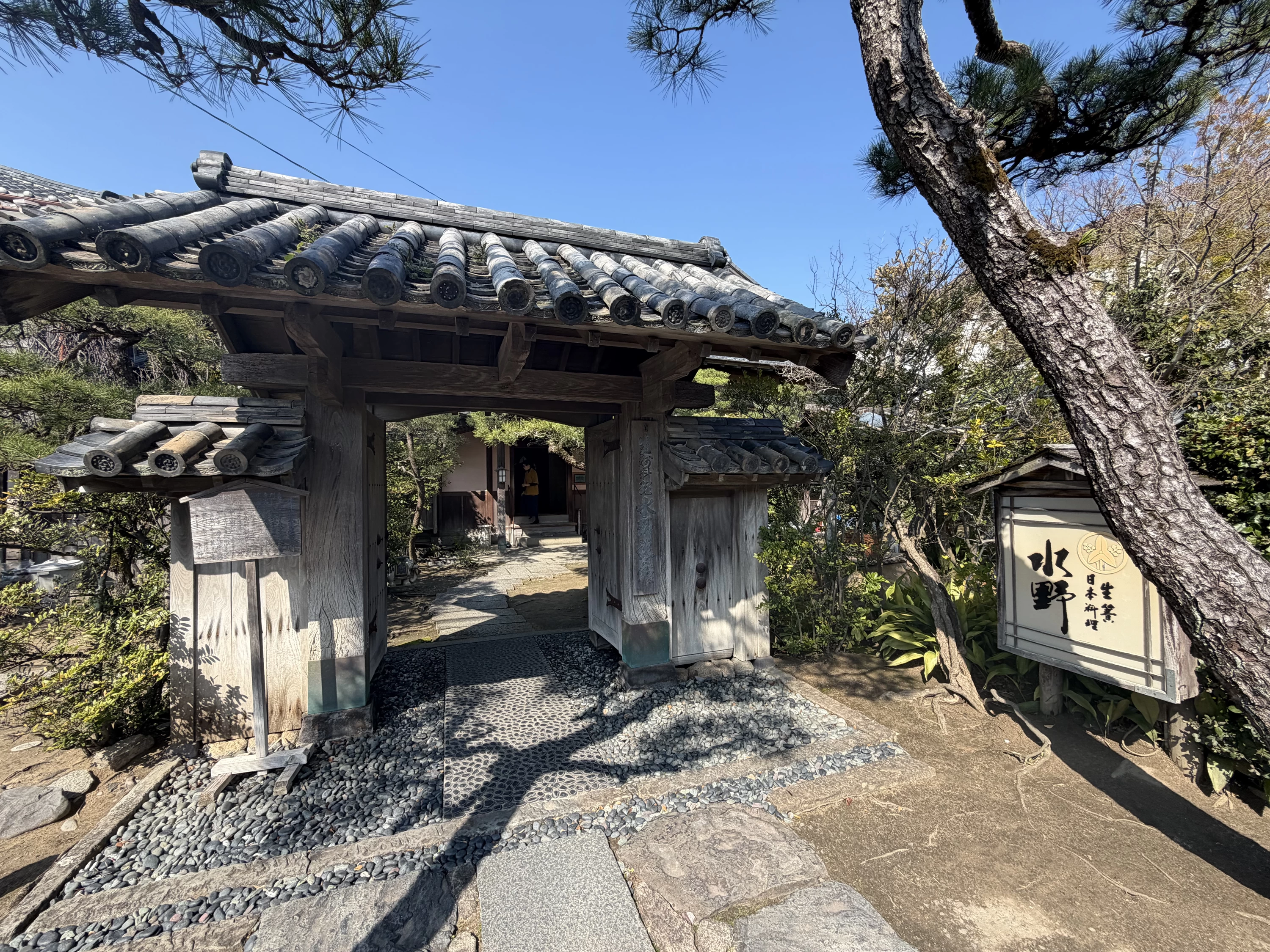 門の内側に入ると、昭和13年に紙問屋の別荘として建てられた、伝統的な和風建築が静かに立っていました。派手さはないけれど凛とした品がある。