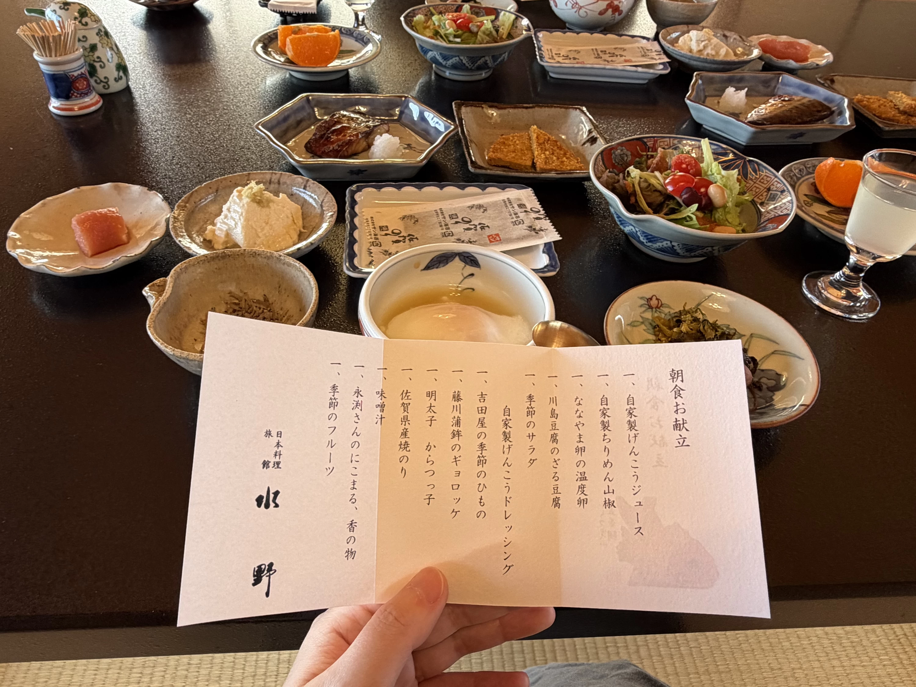 一品ごとに器を変える細やかなこだわりがあるからこそ、料理がより引き立ち、目でも楽しめる。水野旅館の食事は、味だけでなく、器まで含めて一つのもてなしなのだと感じました。