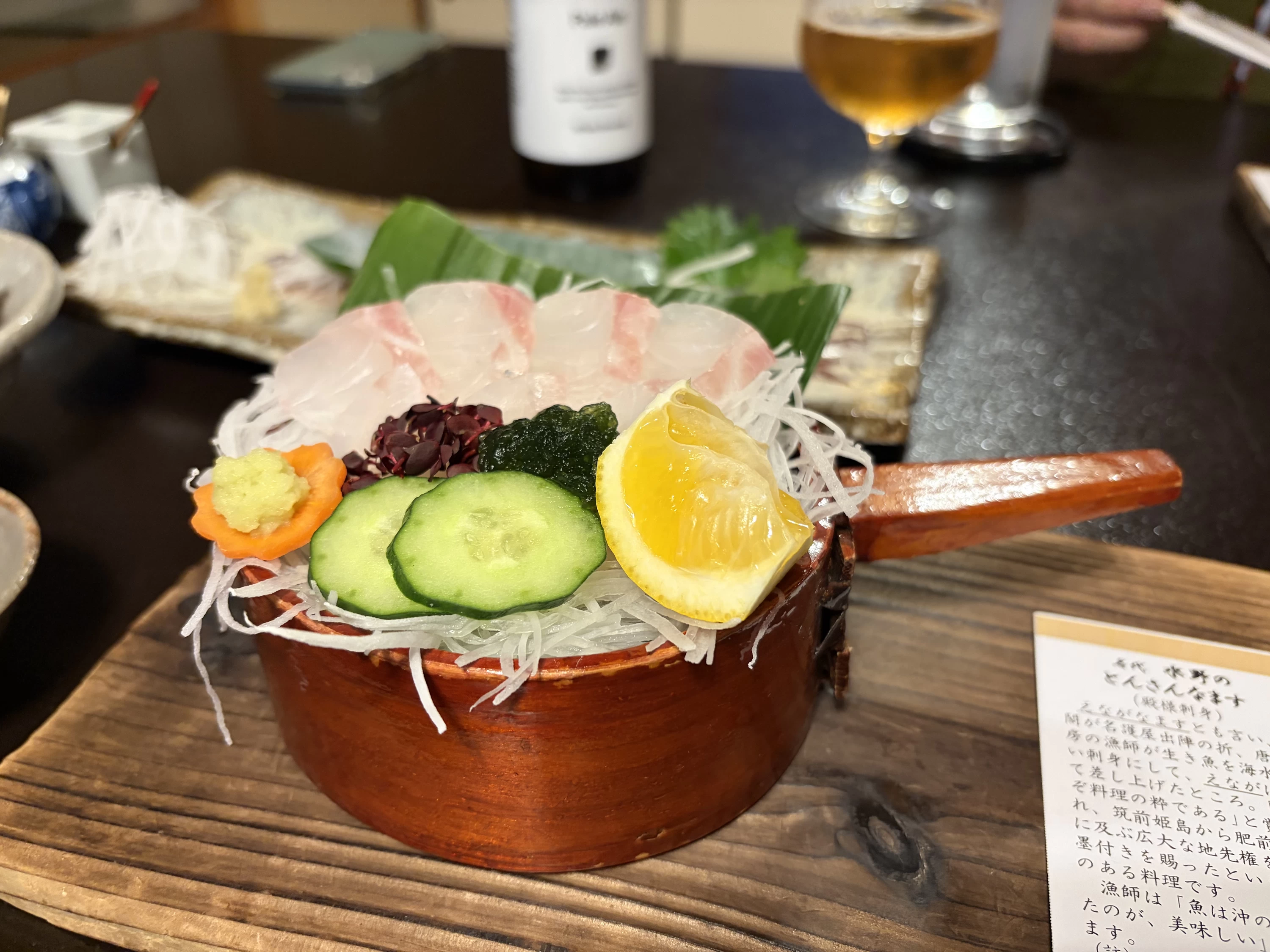 席に着いて最初に感動したのは、料理とともに並ぶ器でした。運ばれてくる一品ごとに、器が少しずつ変わっていきます。唐津焼の落ち着いた風合いの器もあれば、有田焼のやわらかな色合いの器もあり、料理ごとに表情が違うのが印象的でした。ただ器が並んでいるのではなく、その料理がいちばん美しく見えるように選ばれているのが伝わってきました。