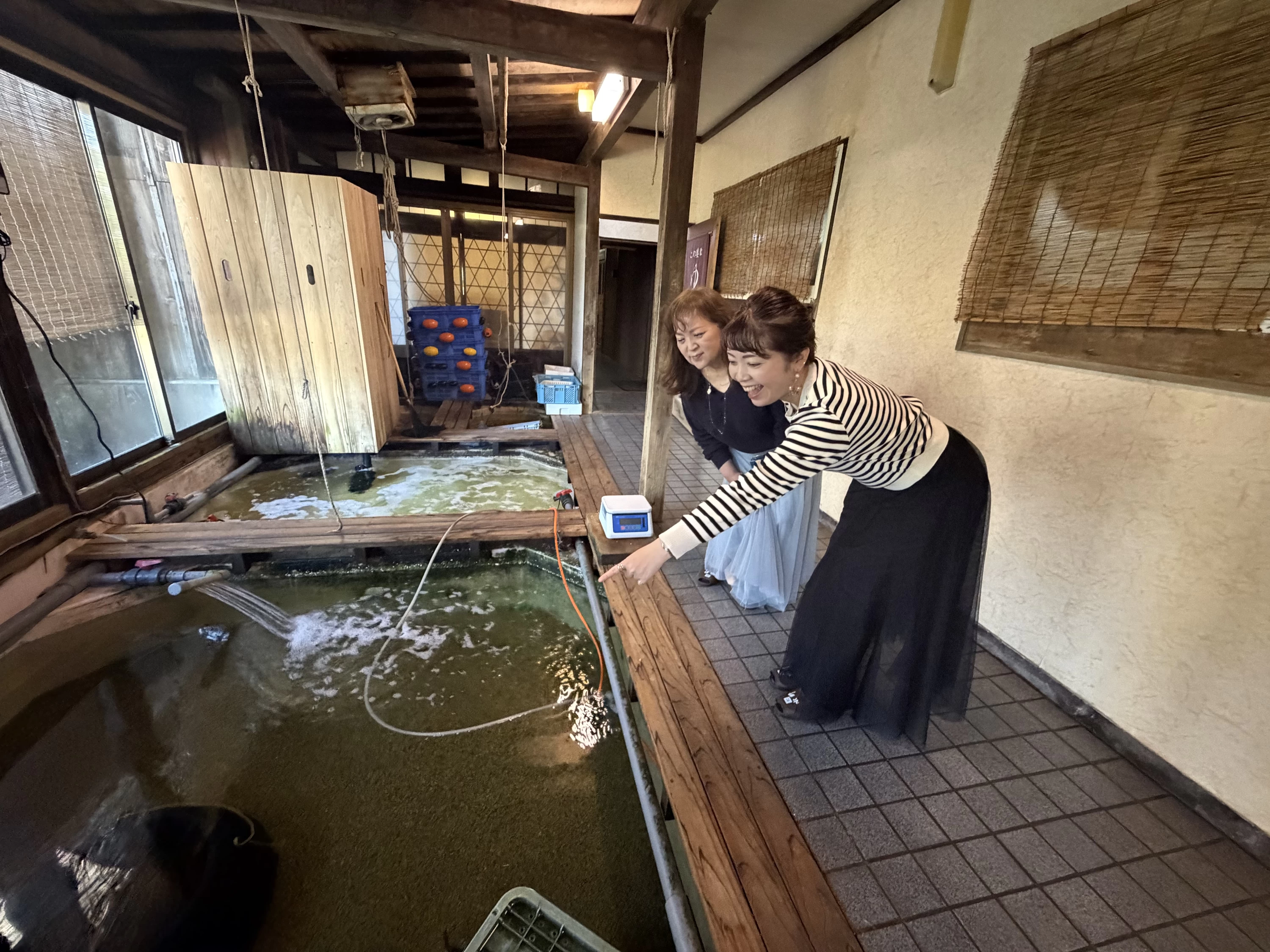お刺身をひと口食べて、思わず「おいしいね」と母と顔を見合わせました。食事中に仲居さんから、目の前の海で獲れた魚を生け簀に入れ、旅館の会長自ら捌いて提供してくださっていると教えていただきました。チェックイン時の館内案内で実際に生け簀を見ていたので、その言葉を聞いて、お刺身の味がより腑に落ちました。