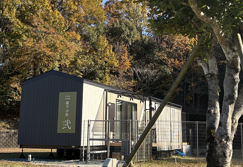 豊かな森に囲まれた「Luxury Trailers 離宮 伊勢」は、和の趣とアウトドアが融合した新しいスタイルの宿泊施設です。全室テラスに完備された信楽焼の露天風呂では、24時間好きな時に、澄んだ空気や自然の息吹を感じながらの湯浴みが叶います。12月〜2月の冬季には、お肌がツルツルになるといわれる新美里温泉を導入。体の芯から温まる至福のひとときをご満喫ください。お食事は、松阪牛をはじめとする三重の厳選食材を味わう豪華なBBQ。愛犬と過ごせる2棟では、プライベートなテラスでワンちゃんと片時も離れることなく、周囲を気にせずゆったりとお食事をお愉しみいただけます。夜には星空の下でたき火を囲んだり、伊勢茶のロウリュが香る本格的な薪サウナで汗を流したりと、過ごし方は自由自在。「おかげ犬」の歴史が息づく伊勢の地で、愛犬と共に心豊かな休日を過ごしてみてはいかがでしょうか。