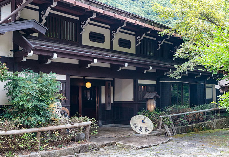 奥飛騨温泉郷・福地温泉に佇む湯元長座は、150年以上の歴史を持つ古民家を移築した温泉旅館です。客室やロビーには囲炉裏を配し、趣ある雰囲気を演出。夕食は、季節の川魚や郷土料理の五平餅、あげづけを囲炉裏で炙って味わう炉端焼きを楽しめます。また、敷地内には複数の湯処が点在し、館内では肌触りの良い単純泉、館外では美肌の湯として知られる炭酸水素塩泉を堪能できます。山あいの静かな環境で落ち着いた滞在をお楽しみください。